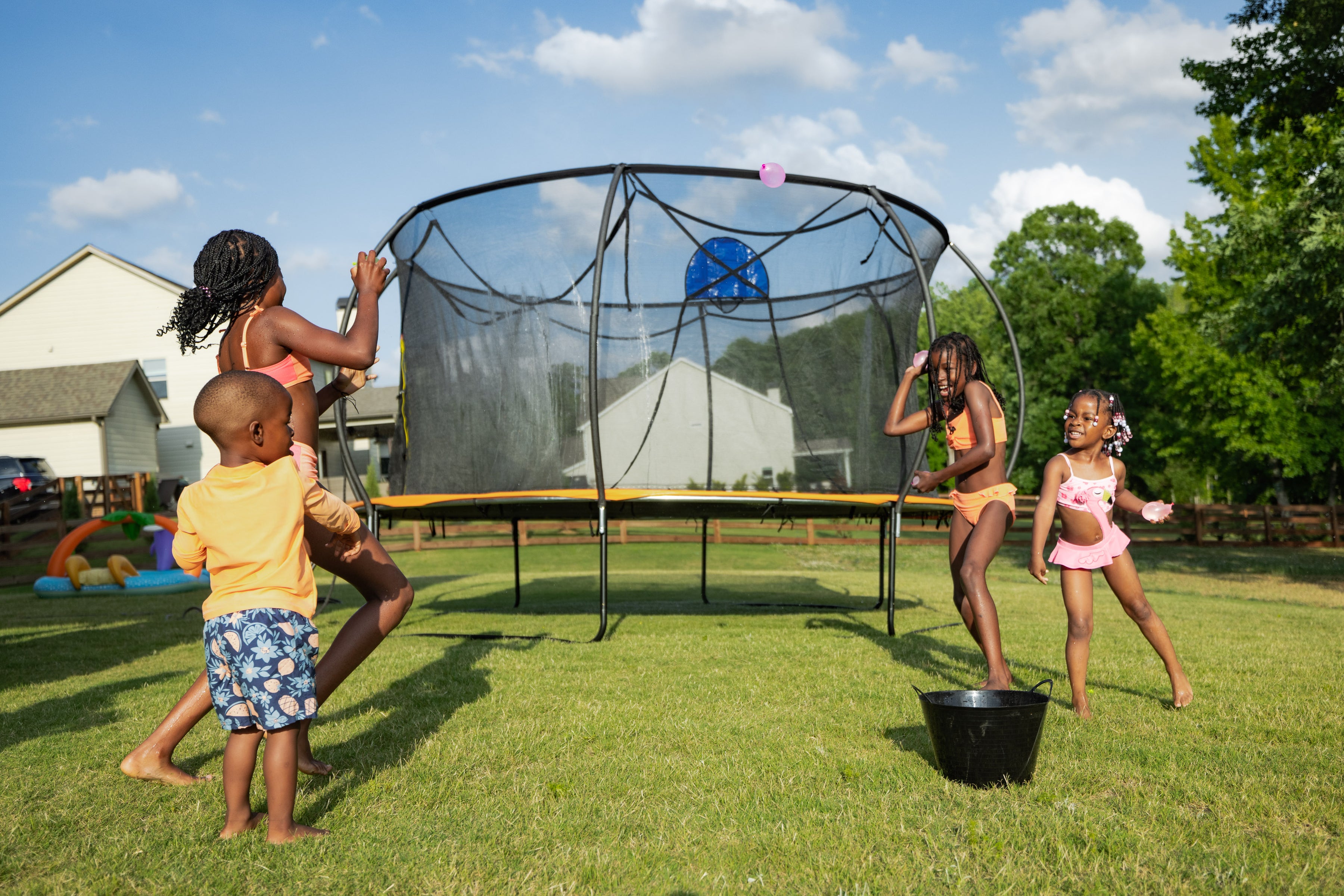 For families with multiple children, we recommend 12ft models or larger. While we advise only one jumper at a time for maximum safety, a larger jumping surface provides more room for rotation among siblings and reduces collisions with the safety net when taking turns.