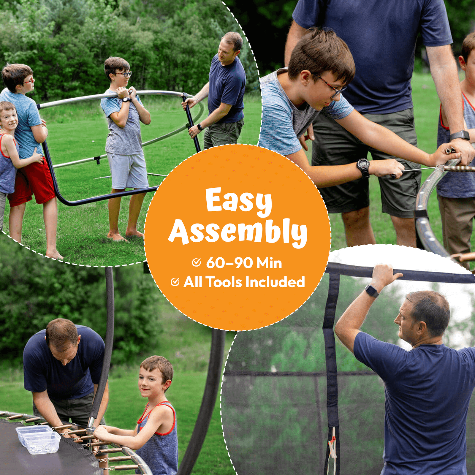 Make sure all parts are firmly tightened — your trampoline is now ready for years of safe outdoor fun!