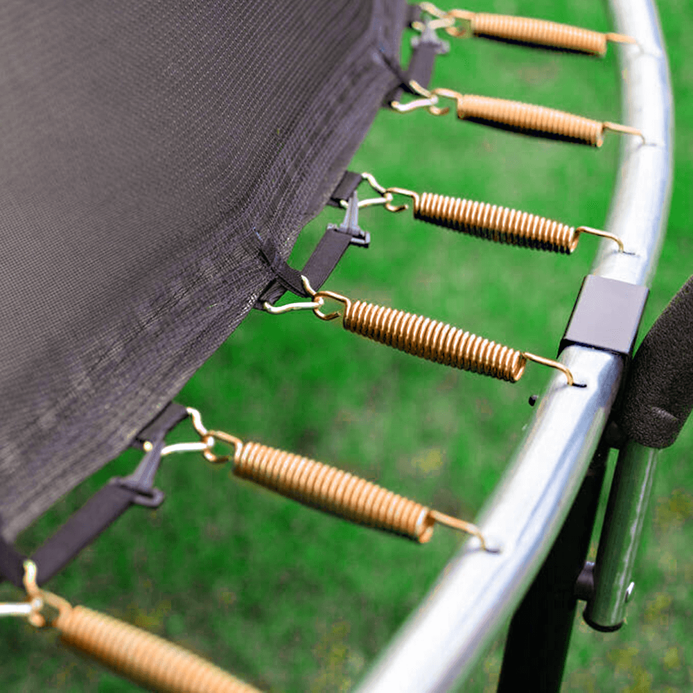 Attach the springs evenly around the frame and connect the jumping mat.